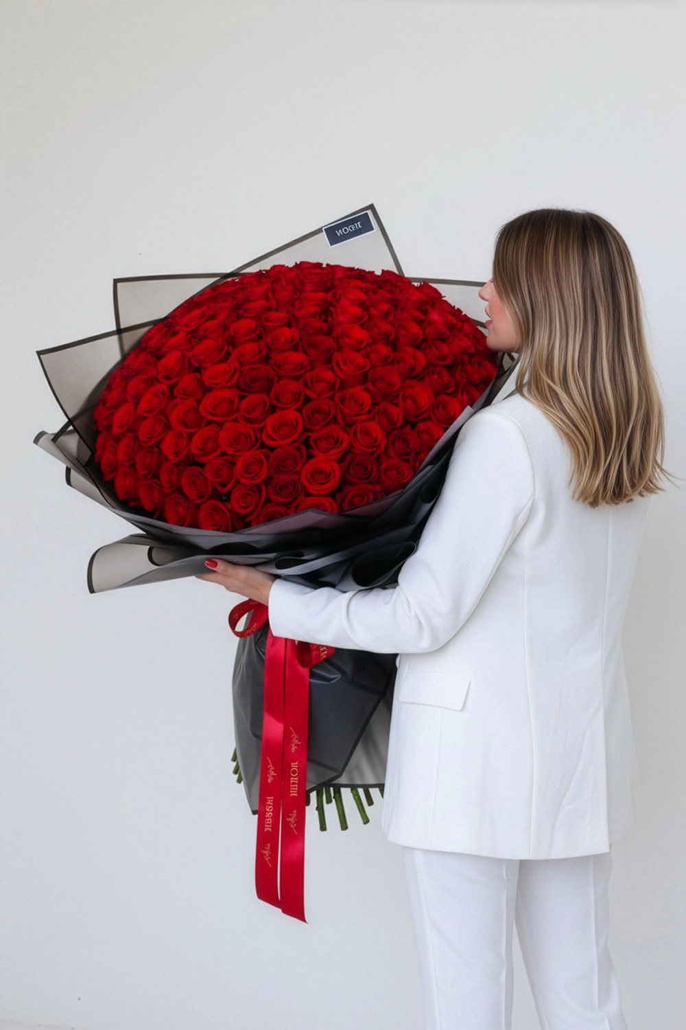 Woshe Round Hand Bouquet - Full Red Roses