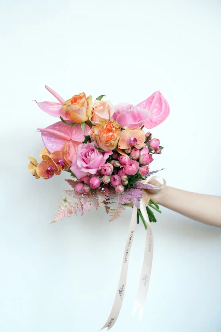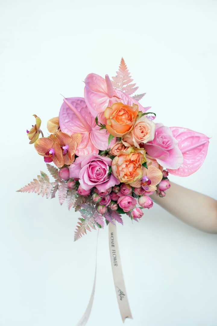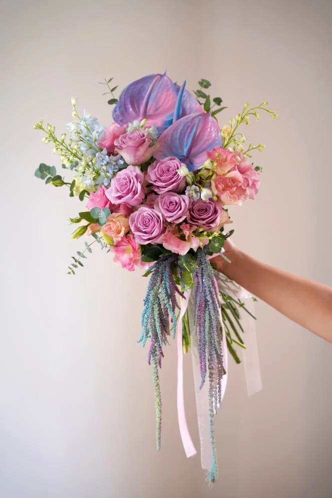 آنتریوم و اکسسری های خاص دست رنگ آمیزی شده به همراه گل های فصل