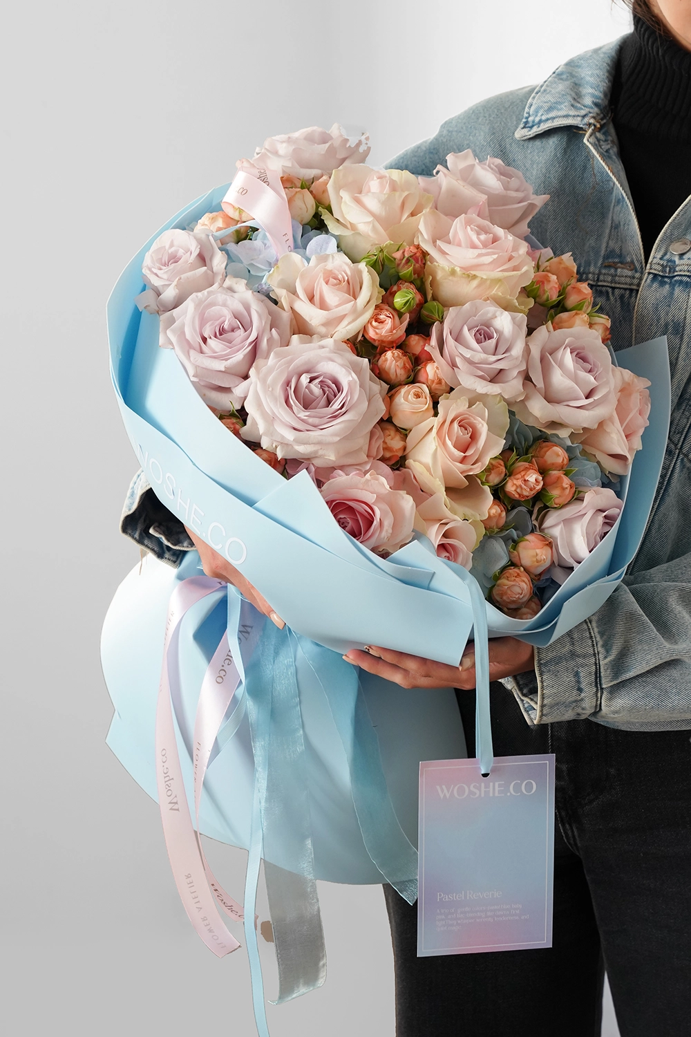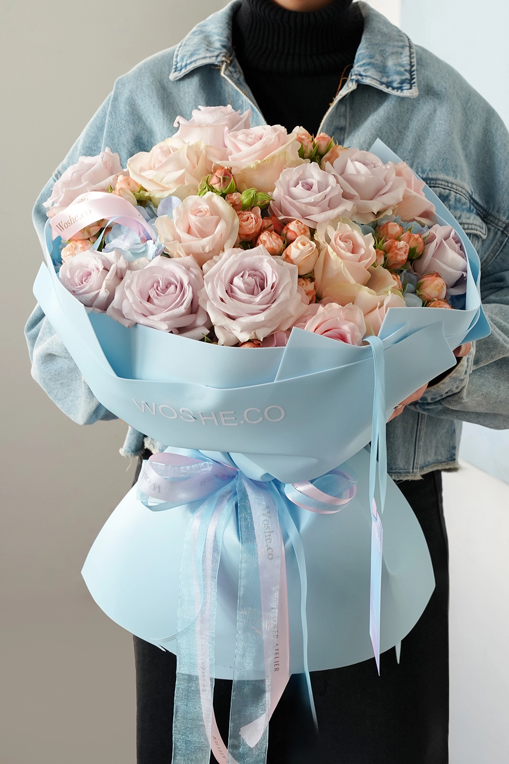 Woshe Round Hand Bouquet - Light Blue
