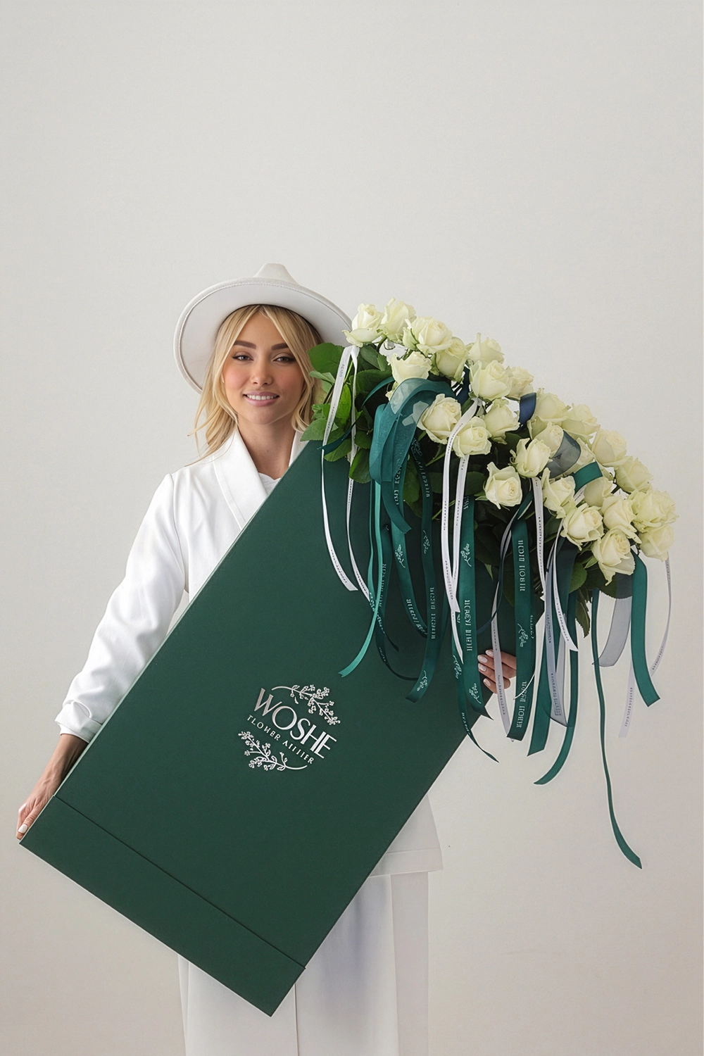 Green Rose Bag- White Roses , ۱۰۰ شاخه