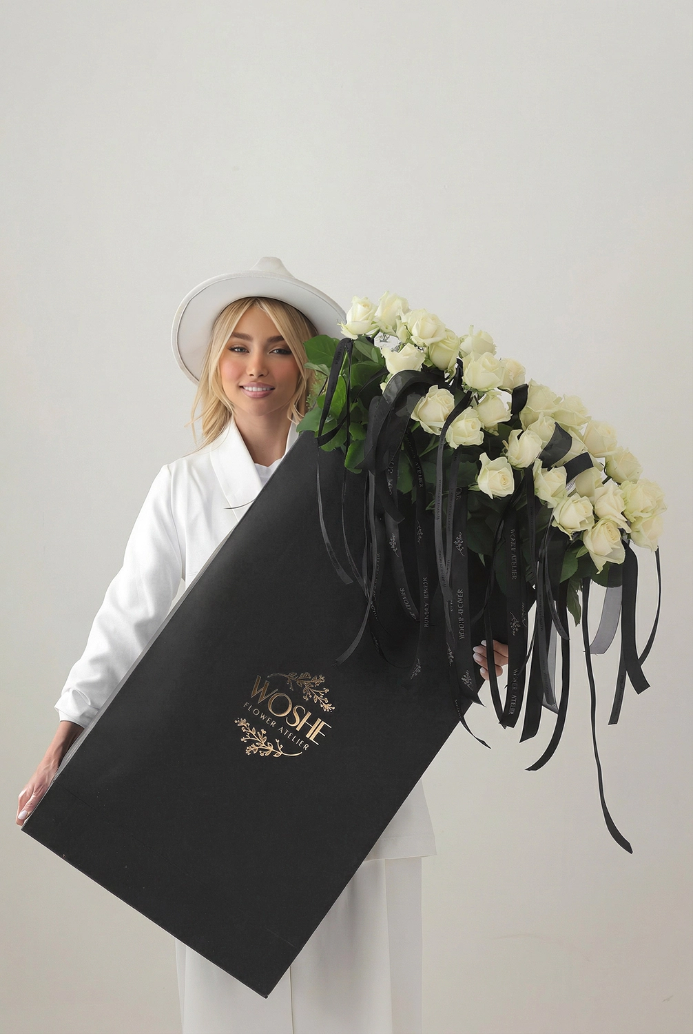Black Rose Bag- White Roses , ۱۰۰ شاخه