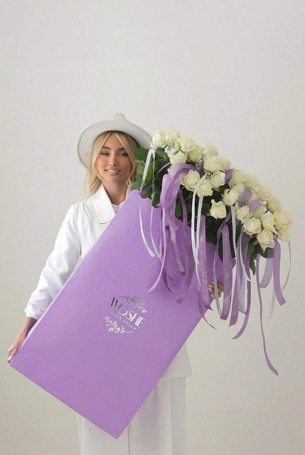 Purple Rose Bag- White Roses , ۱۰۰ شاخه
