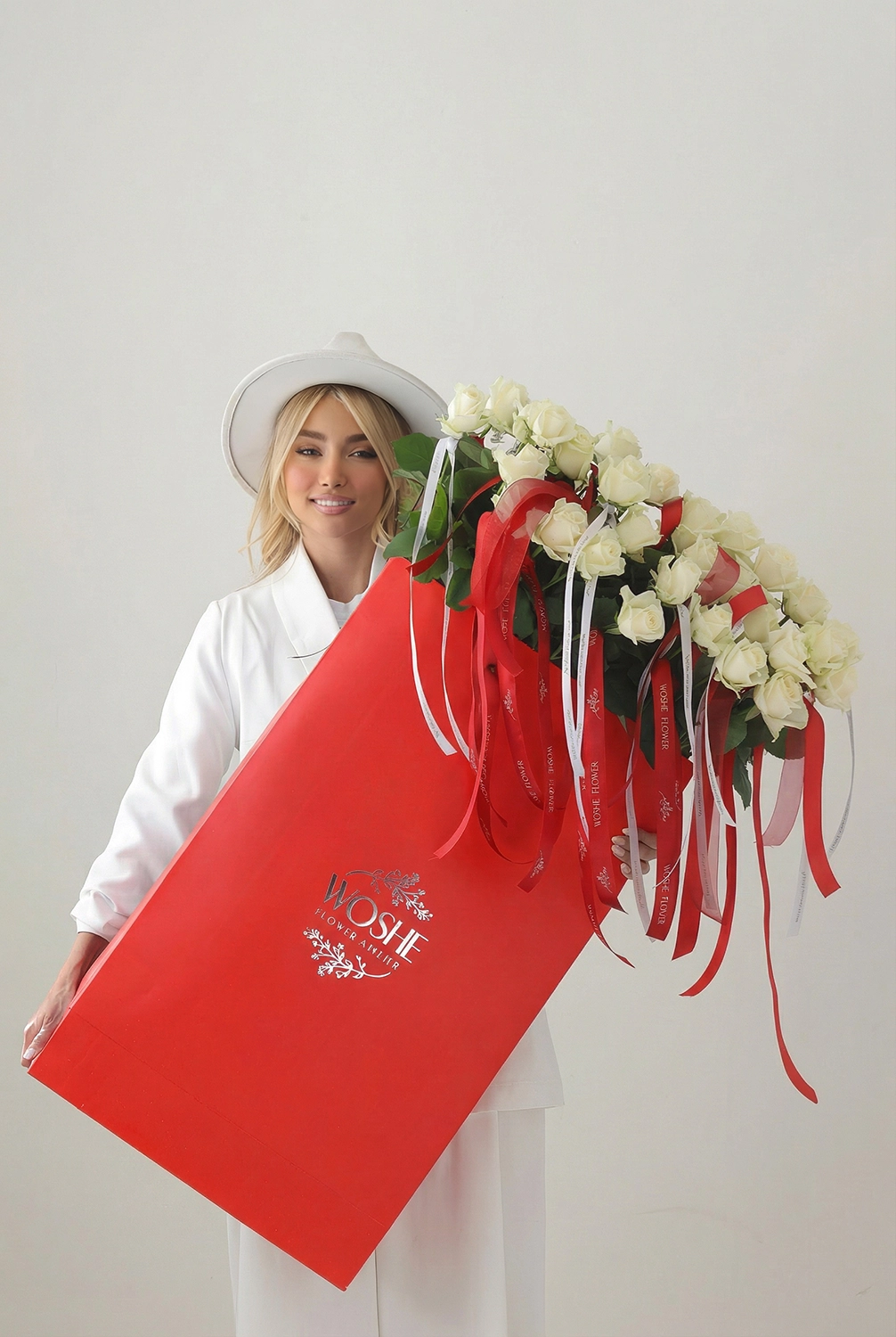 Red Rose Bag- White Roses , ۱۰۰ شاخه