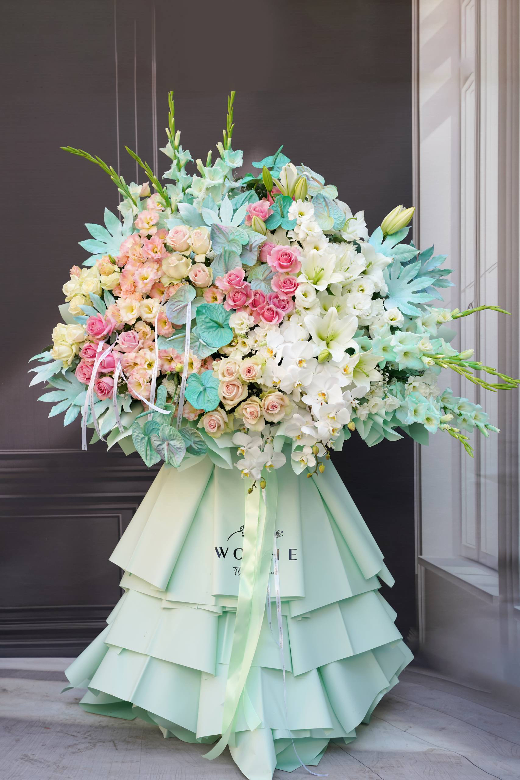 ترکیبی چشم‌نواز از رز هلندی، ارکیده، لیلیوم آنتوریوم و گل‌های فصل،