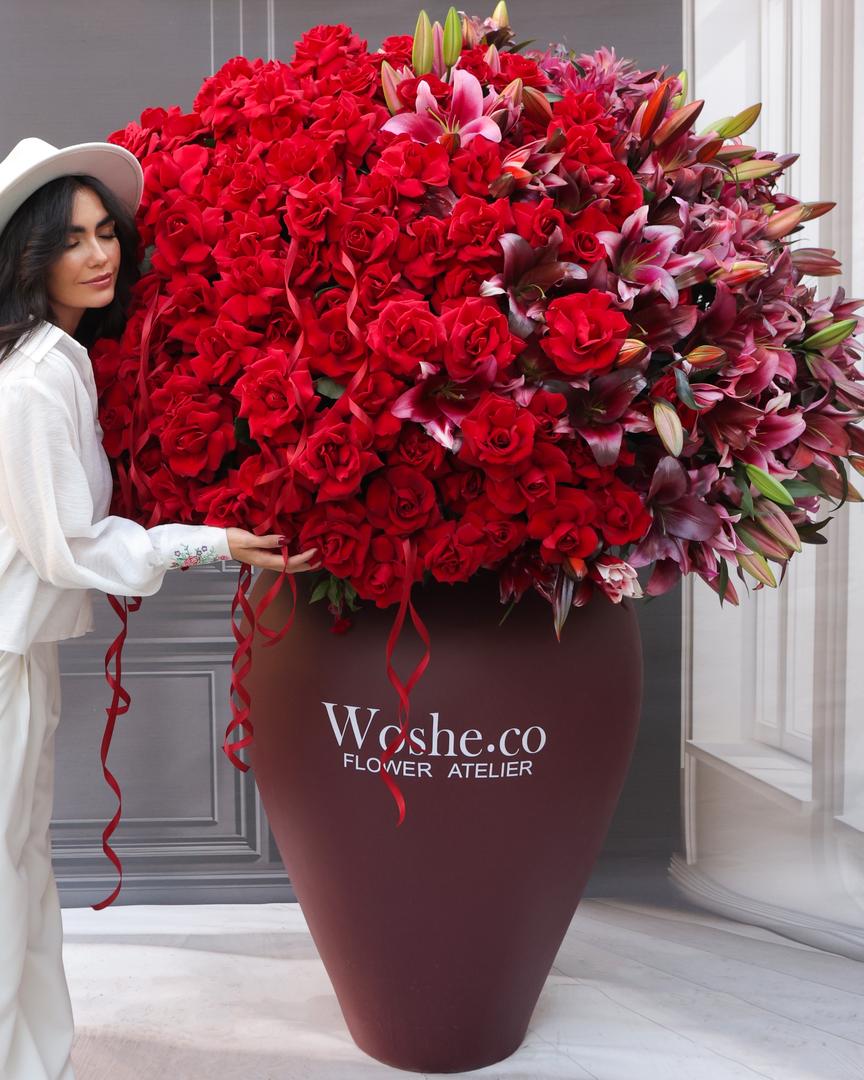 اثری باشکوه با ۱۳۰۰ شاخه رز هلندی پریمیوم در ارتفاع ۲ متر و ۱۰ سانتی‌متر؛ نمادی از احترام، عشق و زیبایی خالص.