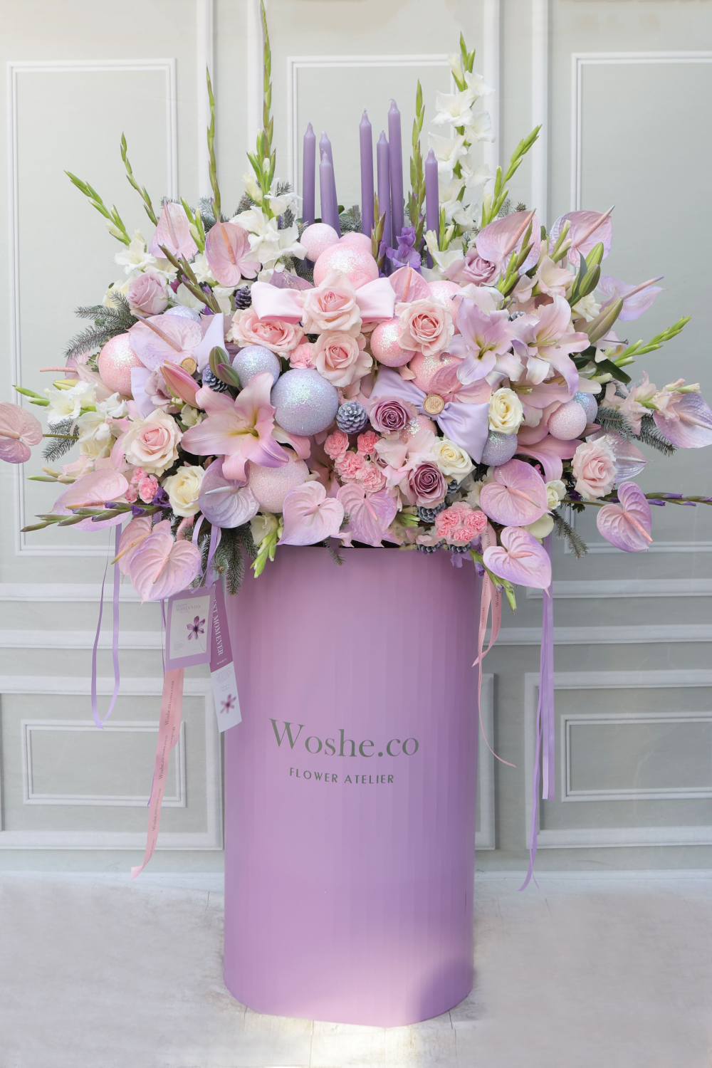 آنتریوم های دست رنگ آمیزی شده و  اکسسری های خاص تزیینی و شمع؛