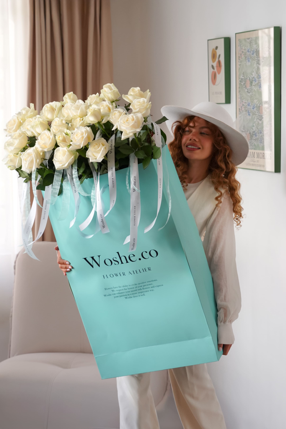 Aqua Mint Rose Bag- White Roses , ۱۰۰ شاخه