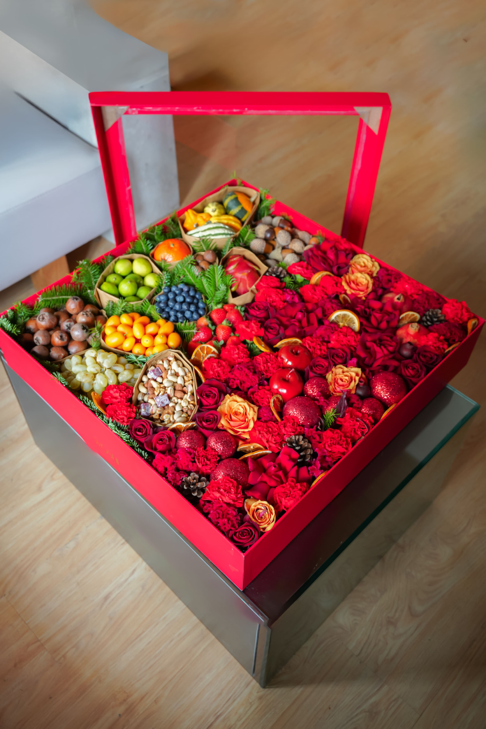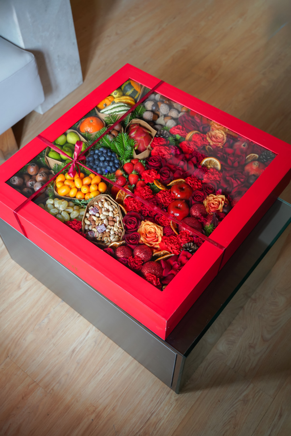 ترکیبی از رزهای جاودان متعدد در کنار شکلات‌های دست‌ساز بلژیکی، در باکسی شفاف و مینیمال که زیبایی را بی‌واسطه نشان می‌دهد؛